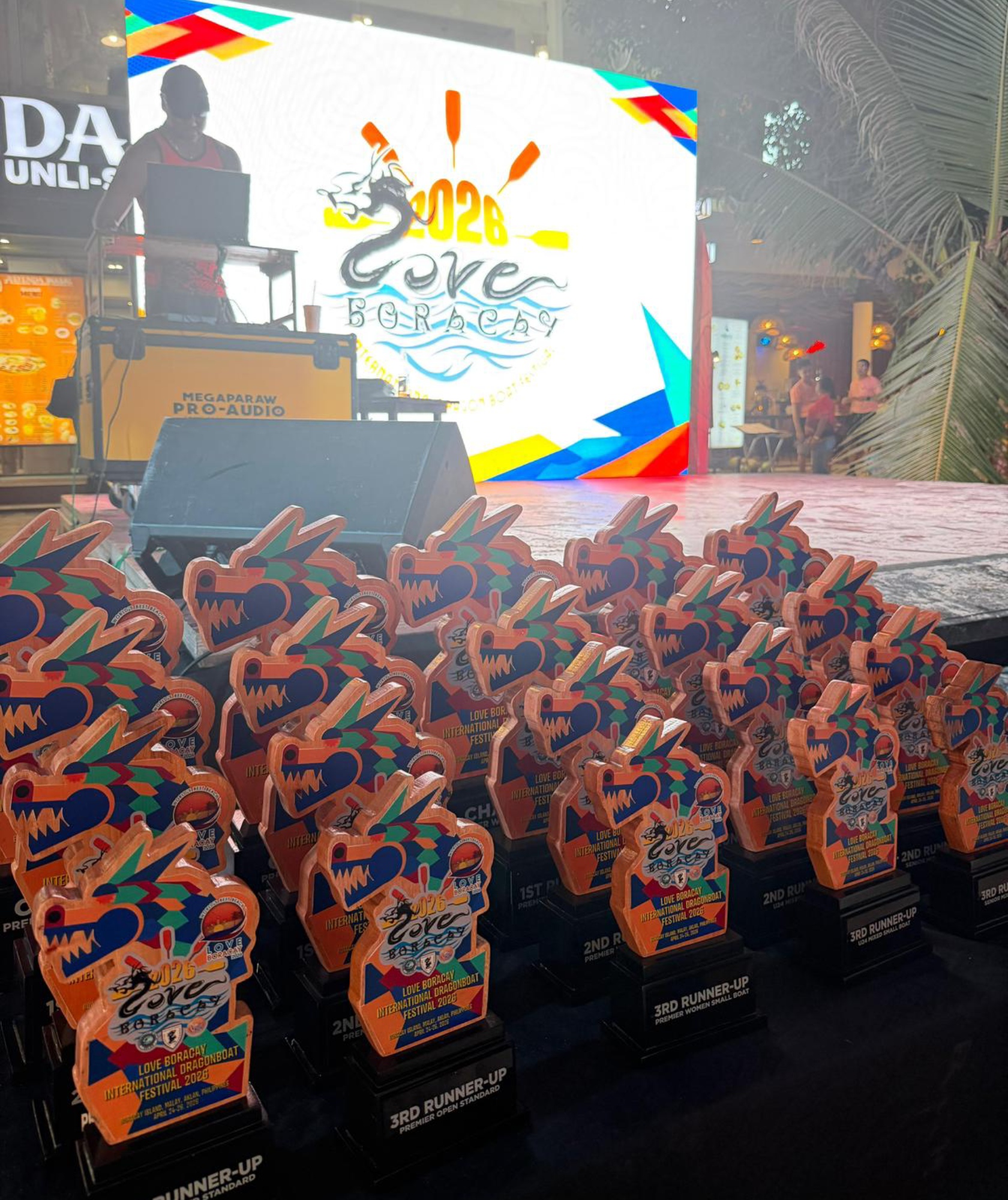 Jointly organised by the Boracay Dragon Boat Association (BDBA), Philippine Dragon Boat Federation (PDBF) and the local government unit of the Municipality of Malay, Aklan Province, the Festival attracted over 50 teams from 14 countries and regions, with some 2 000 athletes participating to compete for awards in five race categories. Among them, seven teams with nearly 200 racers were from Hong Kong. In support of the Hong Kong athletes, the Singapore ETO sponsored complimentary round-trip local transportation between the airport and hotel for all Hong Kong participants.